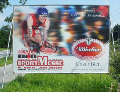 Der hier abgebildete 'Ironman' war im letzten Jahr Dritter. Ein gewisser Hannes Hempel, Lokalmatador aus Klagenfurt, bei dem ich mir nur schwer vorstellen kann, dass er in seiner Pubertär von den Altersgenossen nicht auch mal Pempel genannt wurde, oder der Hempel-Pempel. Kärnten Buben reden gern so, ich weiß das. Wenn man nur ein wenig genauer hinschaut zeigt sich schon, dass es beim "Ironman Austria" um Doping geht: zunächst um das beliebte Bierdoping. Das Plakat wendet sich an die breite Bevölkerung Kärntens. Die Veranstalter rechnen mit über 100.000 Gaffern entlang der Rennstrecke am Wörthersee. Es ist auf dem Plakat natürlich geflunkert, so zu tun als würde auch der Hempel mit Villacher Bier dopen, und das gar während des Rennens oder auch nur im Training. Das Bierdoping ist jedoch das Vorrecht der Fans. Das ist in jeder Sportart so. Für die Stars ist das Dopen weit schwieriger. Speziell seit in Österreich die ersten Blutzentrifugen-Anbieter, die Testosteron- und Epo-Dealer in Untersuchungshaft sitzen. Auch für den Hempel läuft es derzeit gar nicht gut. Obwohl sein Bild überall für den "Ironman Austria" am kommenden Wochenende wirbt, darf er jetzt nicht einmal daran teilnehmen. Hempel ist schon seit längerem wegen Doping im Gerede. Der tapfere weil reumütige Rauchfangkehrer Bernhard Kohl, Gesamtdritter der Tour de France 2008, gegen den seit Monaten wegen jahrelang betriebenem Doping ermittelt wird, hat nun auch ausgesagt, er hat "Hempel drei Ampullen Amth-2 - in der Wirkung angeblich Testosteron vergleichbar - zu je einem Milliliter überlassen". Der 'Ironman Austria' Veranstalter Stefan Petritsch wagt nicht mehr seinen überall plakatierten Lokalhelden Hempel antreten zu lassen. Zu viele DoperInnen haben in Klagenfurt die Brutaldisziplin Triathlon bereits gewonnen. Seit die Justiz aktiv geworden ist scheint selbst in Österreich immer deutlicher zu werden, dass speziell in Ausdauer-Sportarten ohne künstliche und zum Glück verbotene Leistungsoptimierer zumindest in den Spitzenrängen nichts mehr geht. Der wahrscheinlich mit Testosteron-Substituten gespritzte 'Ironman' Hempel bestreitet die gegen ihn gerichteten Anschuldigungen.